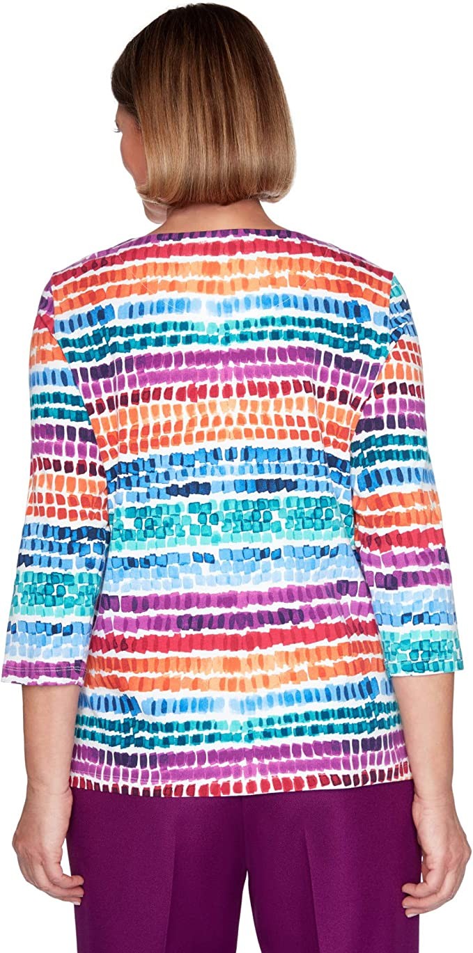 Alfred Dunner Women's Classic Chick Biadere Knit Top with Pintuck Collar Small Multicolor