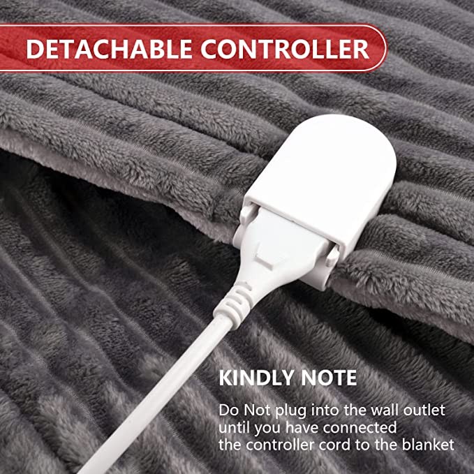 BUNANA electric blanket soft bed wool large 160x130cm, cover blanket heating throw with 3 heating levels and 2-8 hours automatic closing heating blanket, machine washable, simple operation, gray