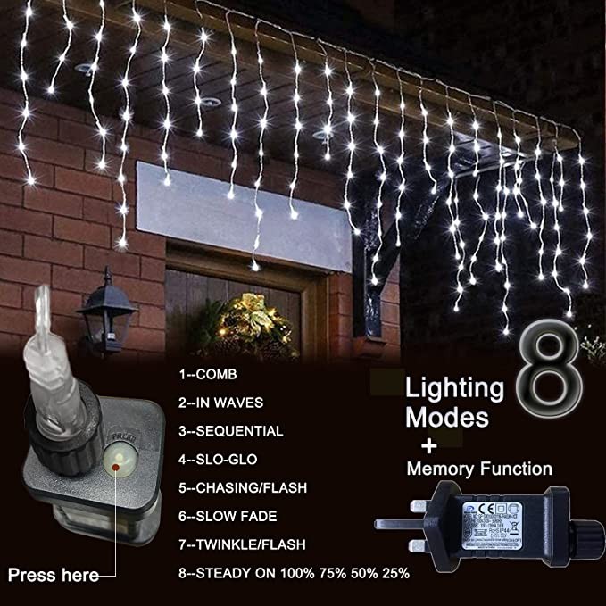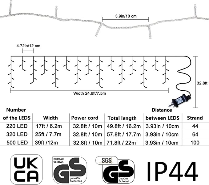 Beautiful Christmas Icicle Lights: It is wide and long enough to cover most of standard windows, walls and even perfect to wrap it around a canopy bed or pergola in the backyard.