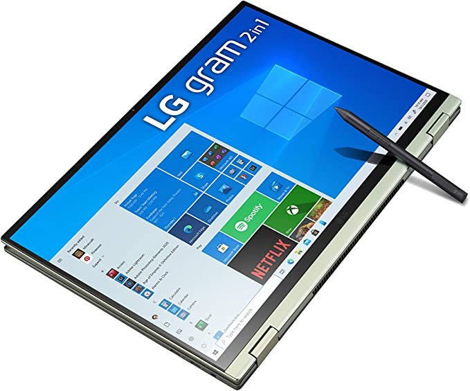LG Gram 16T90P 16-inch WQXGA (2560 x 1600) 2-in-1 Lightweight Touch Display Notebook, Intel Evo 11th Gen Core i5, 16GB RAM, 512GB SSD, 21-hour battery, Alexa built-in, 2X USB-C, HDMI, USB- green