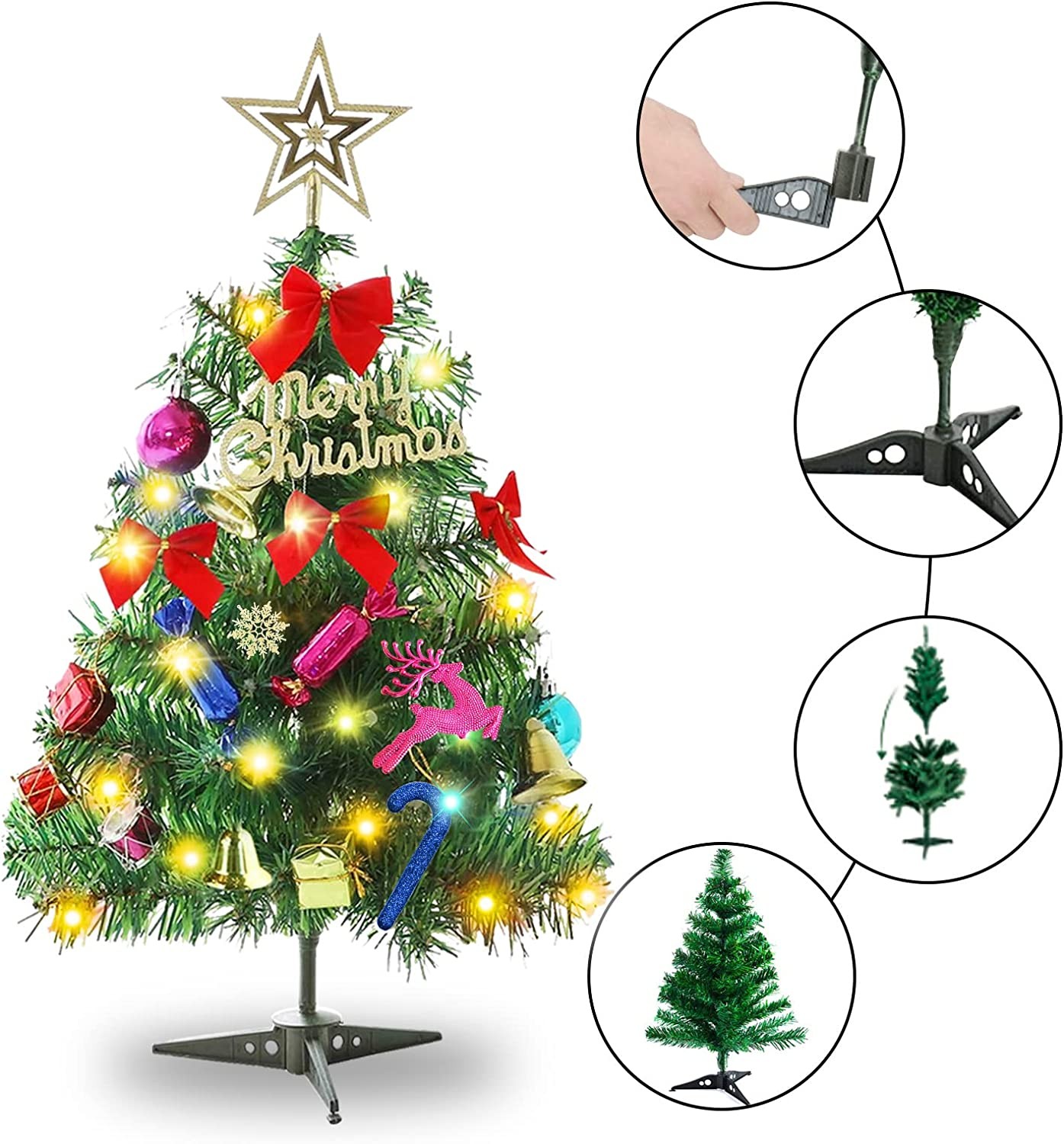 24"/60cm Tabletop Xmas Tree, Artificial Mini Christmas Pine Tree with LED String Lights & Ornaments (Xmas Tree)
