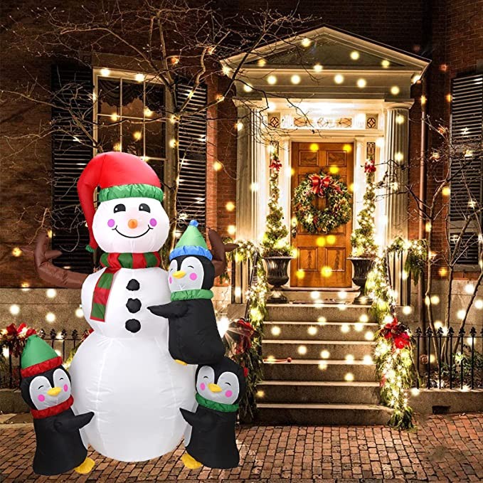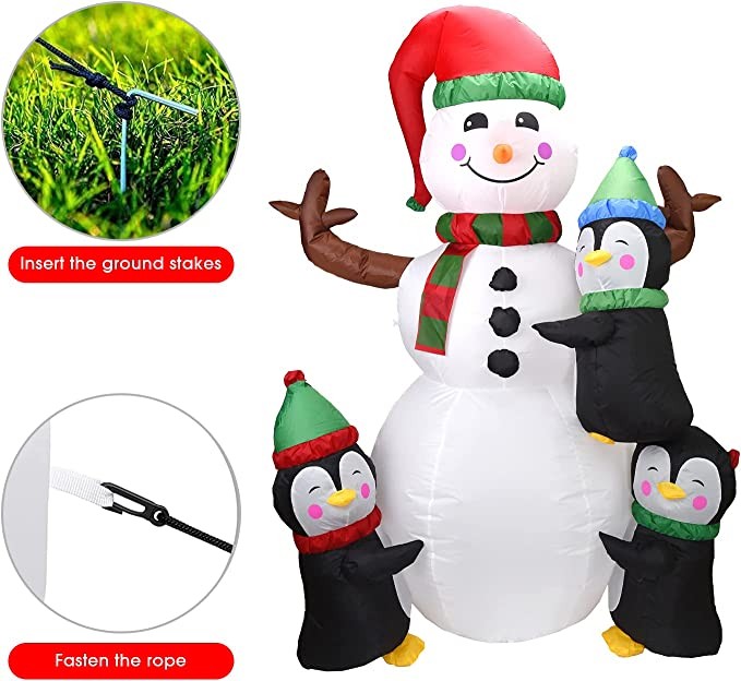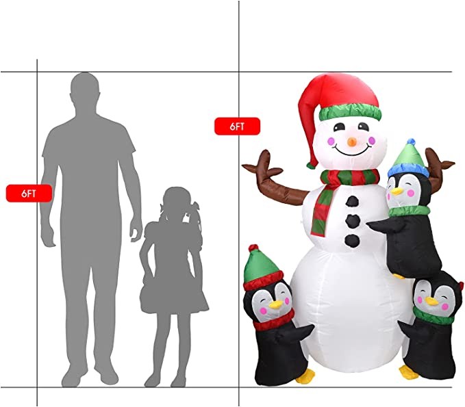 6FT Christmas Inflatable Decoration,Christmas Inflatable Snowman with Penguins Decoration with LEDs Blow Up Inflatables for Christmas/Holiday/Party/Yard/Garden