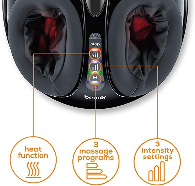 Beurer FM90 Shiatsu and Air Compression Foot Massager, Dual Massage Function, Optional Heating Function, 3 Preset Programs, 3 Intensity Settings, Washable Cover, Fits Size 46