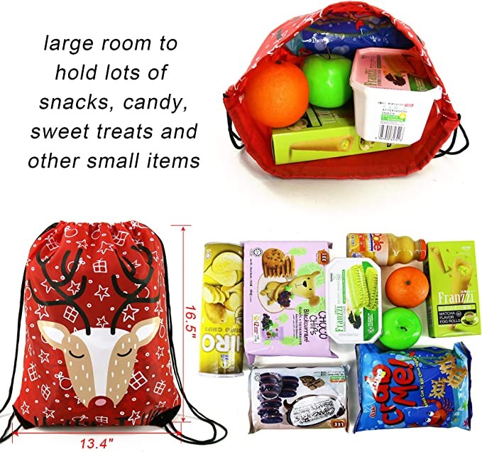 Cheap gift bags for Christmas birthday are safe and secure for kids to store candy, toys and other small gifts collected from families, neighbors or friends on Christmas. Perfect for gifts promotional giveaways, party favors, Christmas shows, Christmas decoration, and much more.