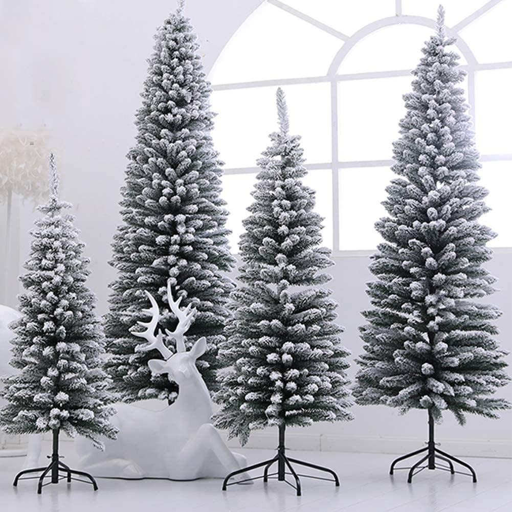 SHATCHI 4Ft-8Ft Artificial Slim Christmas Pencil Tree Holiday Home Decorations with Pointed Tips and Metal Stand Black/White/Frosty Green, Snow Flock, 6ft