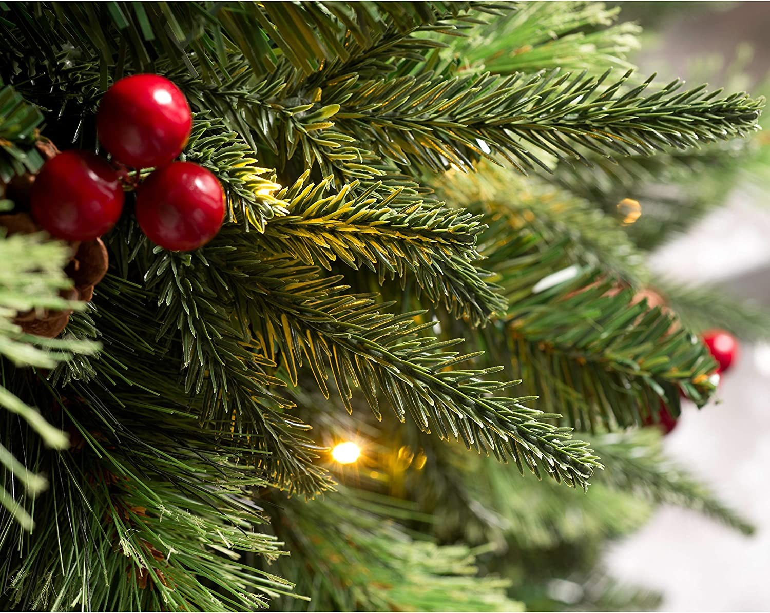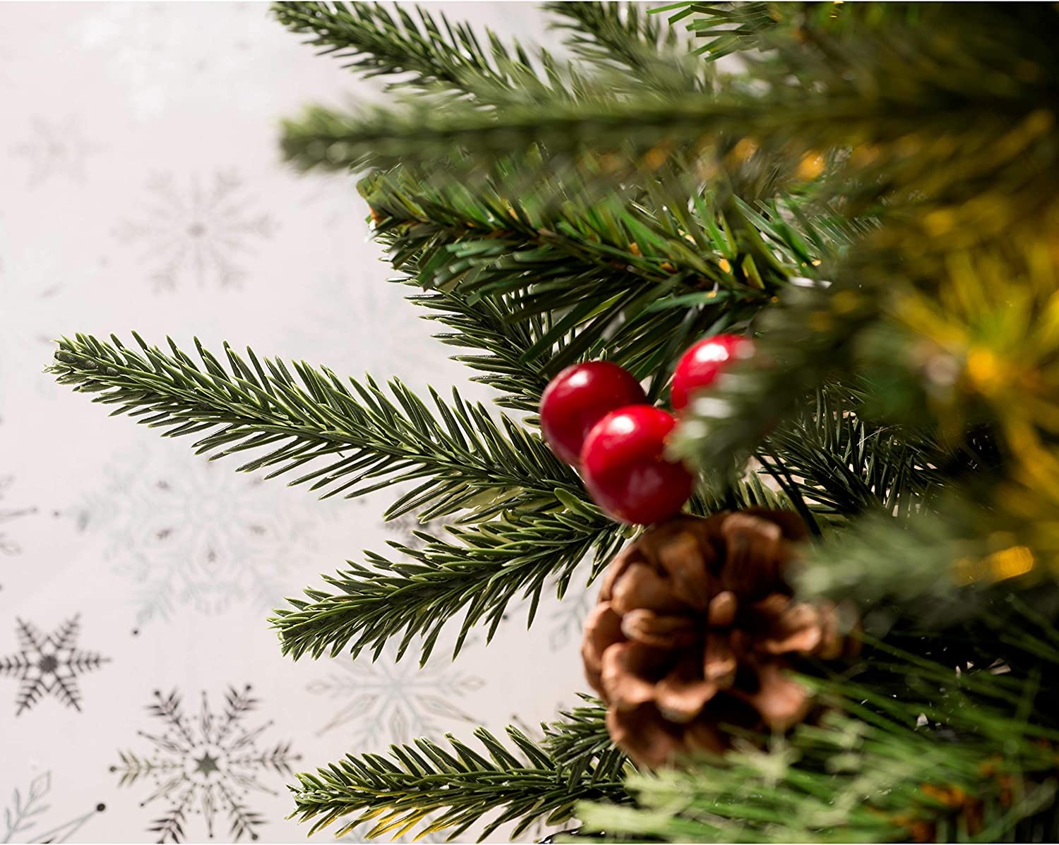 The tree has a hinged construction and boasts 1236 mixed tips for a realistic natural look