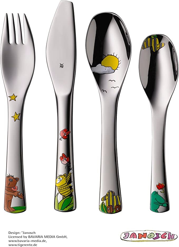 WMF Fortenberg Janosch Kids Cutlery with Kids Cutlery, Set of 6, 3+ Years Old, Cromargan Stainless Steel Polished, Dishwasher Safe, Color and Food Safety